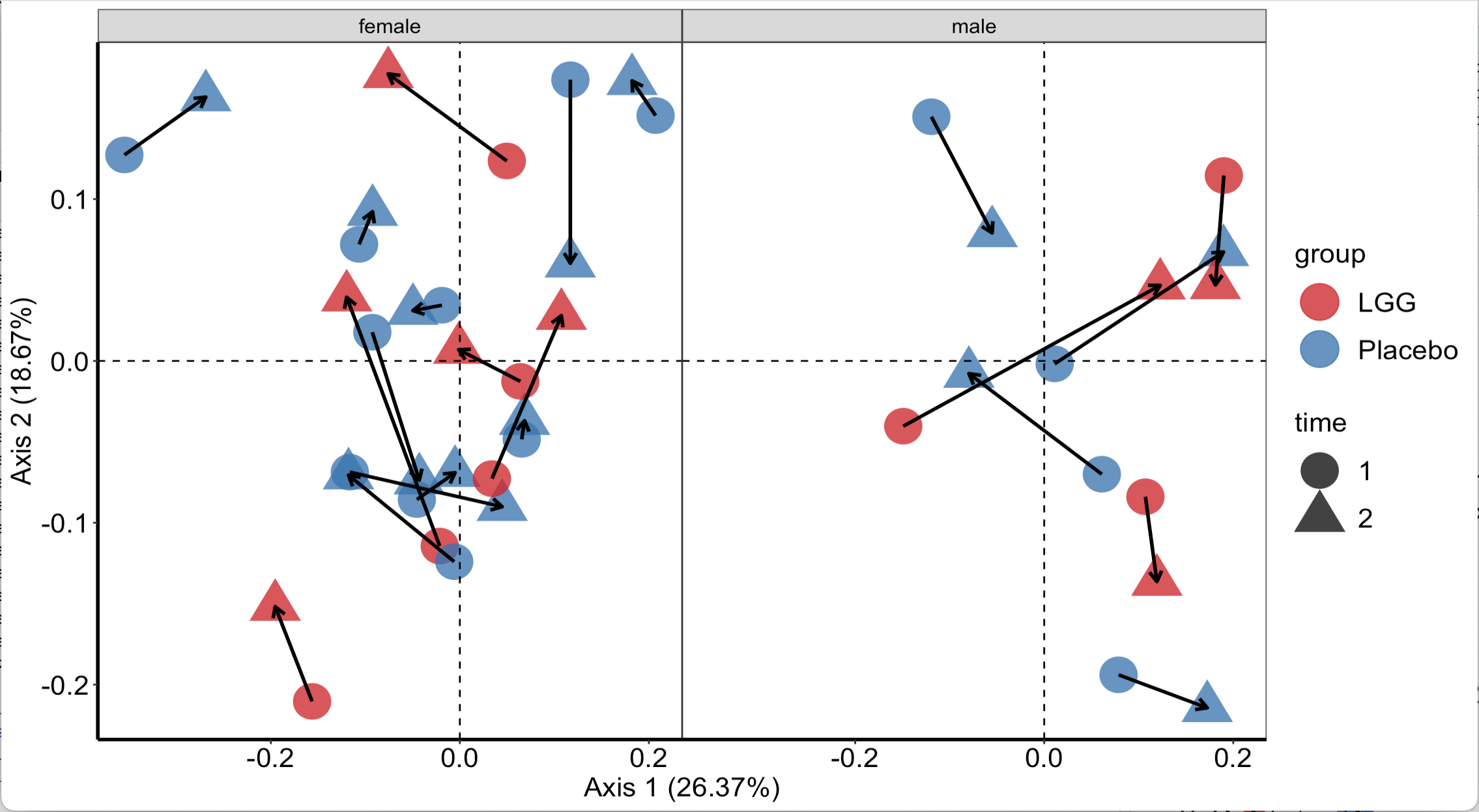 Next, we explore the `generate_beta_ordination_pair()` function. This function generates ordination plots based on the microbial community structures of samples.